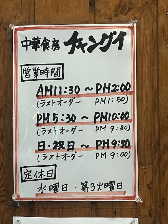 チャングイの店舗は街中というのもあり、専用駐車場はありません。
