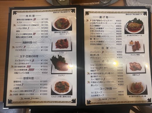 | チャングイのメニュー 赤字はオススメだそうです。 | |