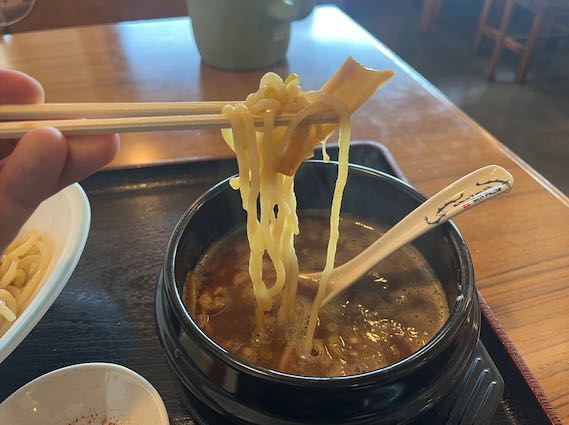 器のつけ汁がグツグツに沸騰してます。