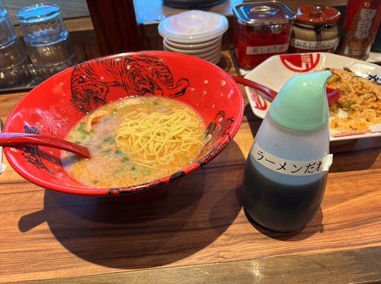 豚骨ラーメンを色んな卓上調味料で味変が楽しめるお店。