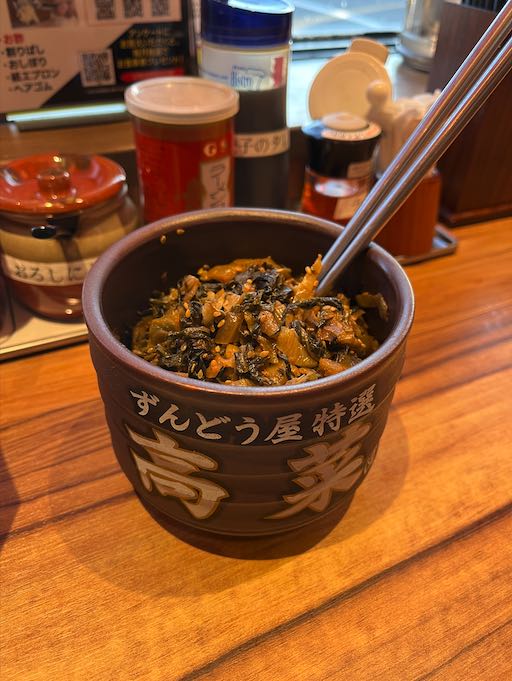 注文が済むと店員さんがツボ入りの高菜を各卓へと置いてくれます。